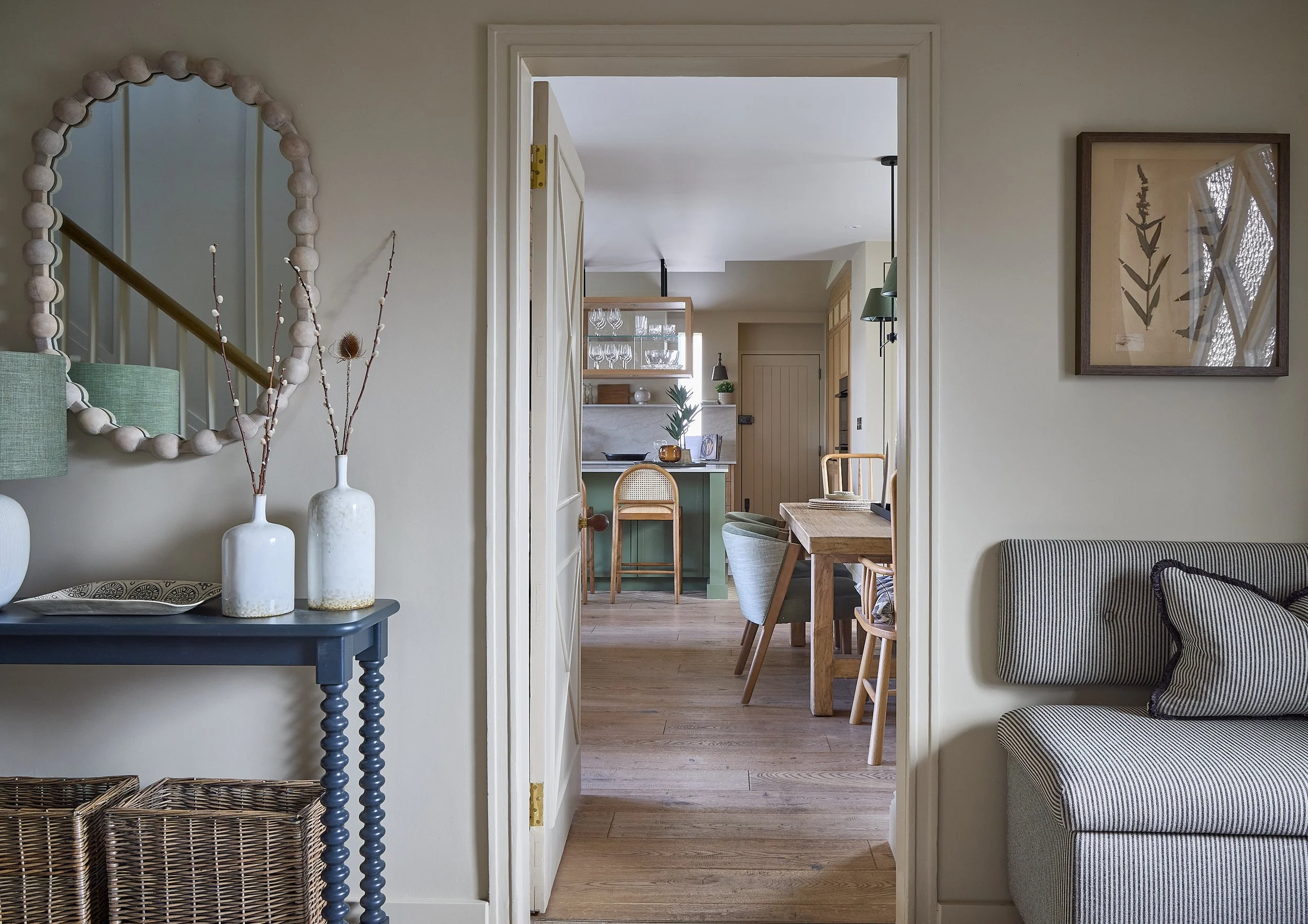 Drawing on Arts and Crafts principles through a contemporary lens, simple rectilinear joinery, natural wood selections and well-crafted bespoke furnishings were designed to enhance the historic nature of the property. Natural materials and layered textures in restrained earthy tones not only complemented a nod to the Arts and Crafts era but created the warm and cohesive modern country interior that Jude’s client desired.